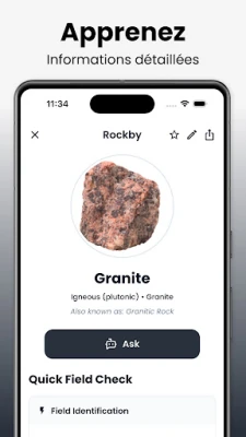 Le fonctionnement de Rockby est d'une simplicité désarmante : une photo suffit. Immortalisez votre trouvaille, et l'application révèle instantanément une mine d'informations : son appellation courante, sa classification scientifique, sa composition détaillée, son processus de formation, ainsi que ses caractéristiques uniques. Et pour aller plus loin, un assistant géologique intelligent est à votre disposition. Interrogez-le sur la dureté d'un minéral, l'histoire d'une roche ou ses applications pratiques. Ses réponses claires et contextuelles, souvent enrichies d'éléments visuels, enrichissent votre compréhension et transforment chaque question en une leçon fascinante.