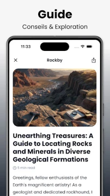 Dévoilez les mystères du monde minéral et rocheux avec Rockby, l'outil indispensable pour tout curieux de la Terre. Que votre passion soit la collection de gemmes scintillantes, l'exploration des formations rocheuses locales ou la simple envie de comprendre les pierres sous vos pieds, Rockby transforme votre exploration géologique en une aventure éclairante. C'est la passerelle ultime pour identifier avec une précision étonnante les roches, minéraux, cristaux et pierres précieuses qui captivent votre regard, et ce, en un clin d'œil.