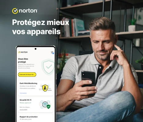 Norton 360 offre une sécurité mobile complète avec antivirus et protection anti-malware par IA. Il inclut un analyseur de virus, un nettoyeur et un VPN pour ta vie privée. Navigue, achète et échange en toute sécurité grâce à sa protection intégrée contre les arnaques.