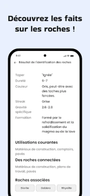 Le fonctionnement est d'une simplicité remarquable : capturez une image claire de votre roche ou téléchargez-en une depuis votre galerie. L'IA de Rock Identifier entre alors en scène, analysant avec une précision étonnante pour vous fournir une identification fiable. Bien au-delà d'un simple nom, Rock Identifier vous offre une véritable encyclopédie géologique : accédez à des fiches descriptives complètes, détaillant la composition, l'origine, l'âge et les caractéristiques uniques de chaque minéral ou pierre précieuse. C'est la connaissance du monde souterrain à portée de main.