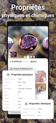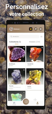 Au-delà de la simple reconnaissance, Rock Identifier est une véritable encyclopédie interactive, conçue pour approfondir votre compréhension du monde minéral. Explorez des fiches détaillées sur la composition, la dureté, la couleur, l'éclat et la formule de chaque pierre. L'application enrichit continuellement ses ressources pour offrir une mine d'informations géologiques. De plus, créez et organisez votre collection personnelle de découvertes : enregistrez vos observations les plus précieuses, ajoutez des informations telles que le lieu de trouvaille, la date d'acquisition, le prix, la taille et téléchargez vos propres photos. Chaque pierre raconte une histoire, et Rock Identifier vous permet de la documenter avec précision.