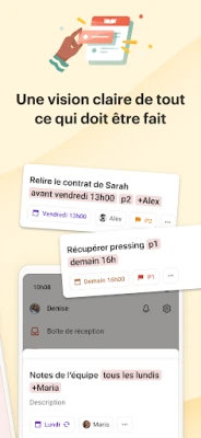 Que ce soit pour affiner votre productivité personnelle ou synchroniser une équipe, Todoist propose une panoplie d'outils professionnels sans la courbe d'apprentissage habituelle. Visualisez vos projets en listes concises, en tableaux Kanban dynamiques pour un aperçu visuel, ou en calendriers pour une planification hebdomadaire stratégique, basculant instantanément entre ces vues. Établissez des habitudes durables grâce aux tâches récurrentes, et structurez des projets complexes avec des sous-tâches, des sections et des étiquettes, le tout en déléguant et en partageant des informations en temps réel avec vos collaborateurs.